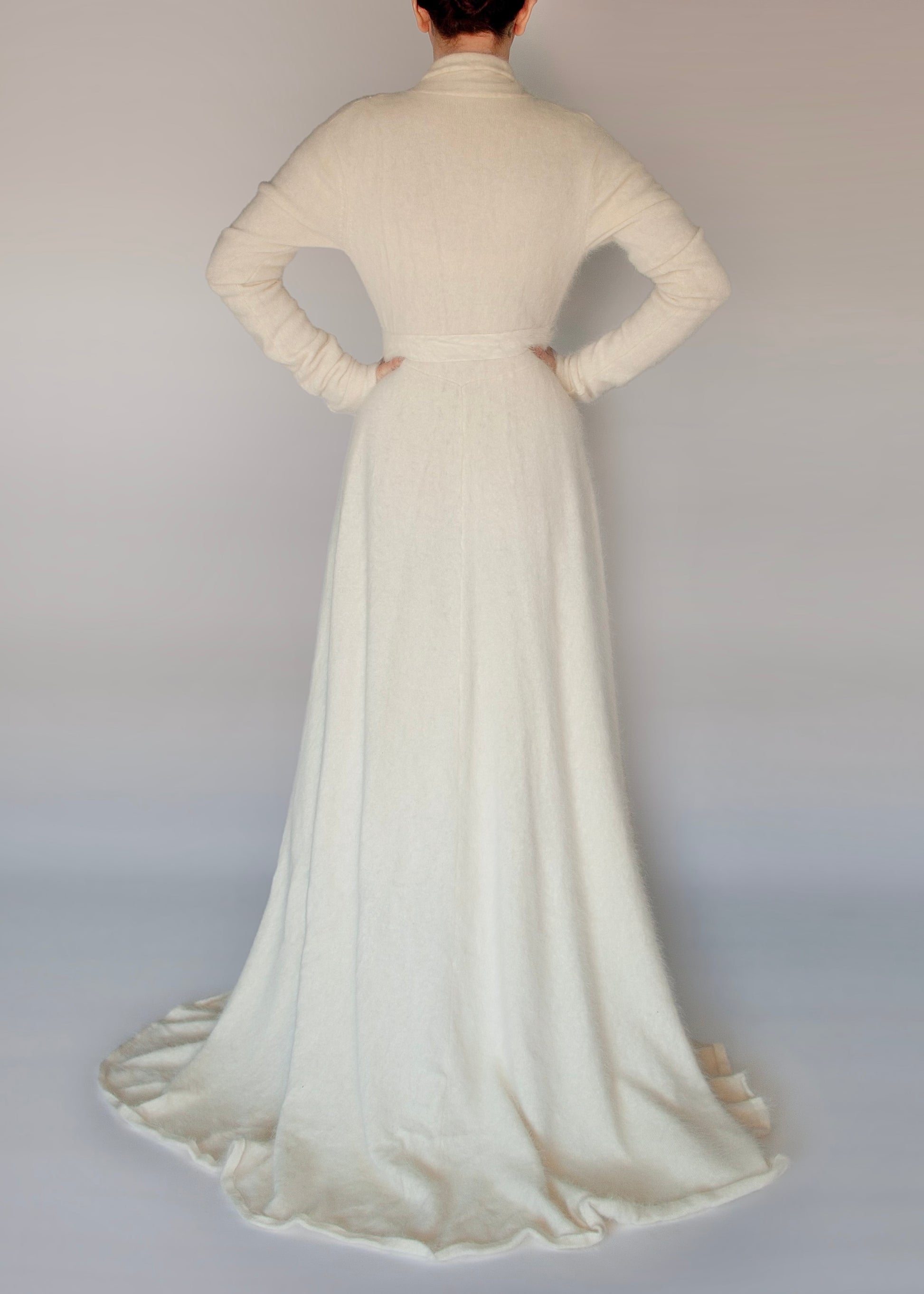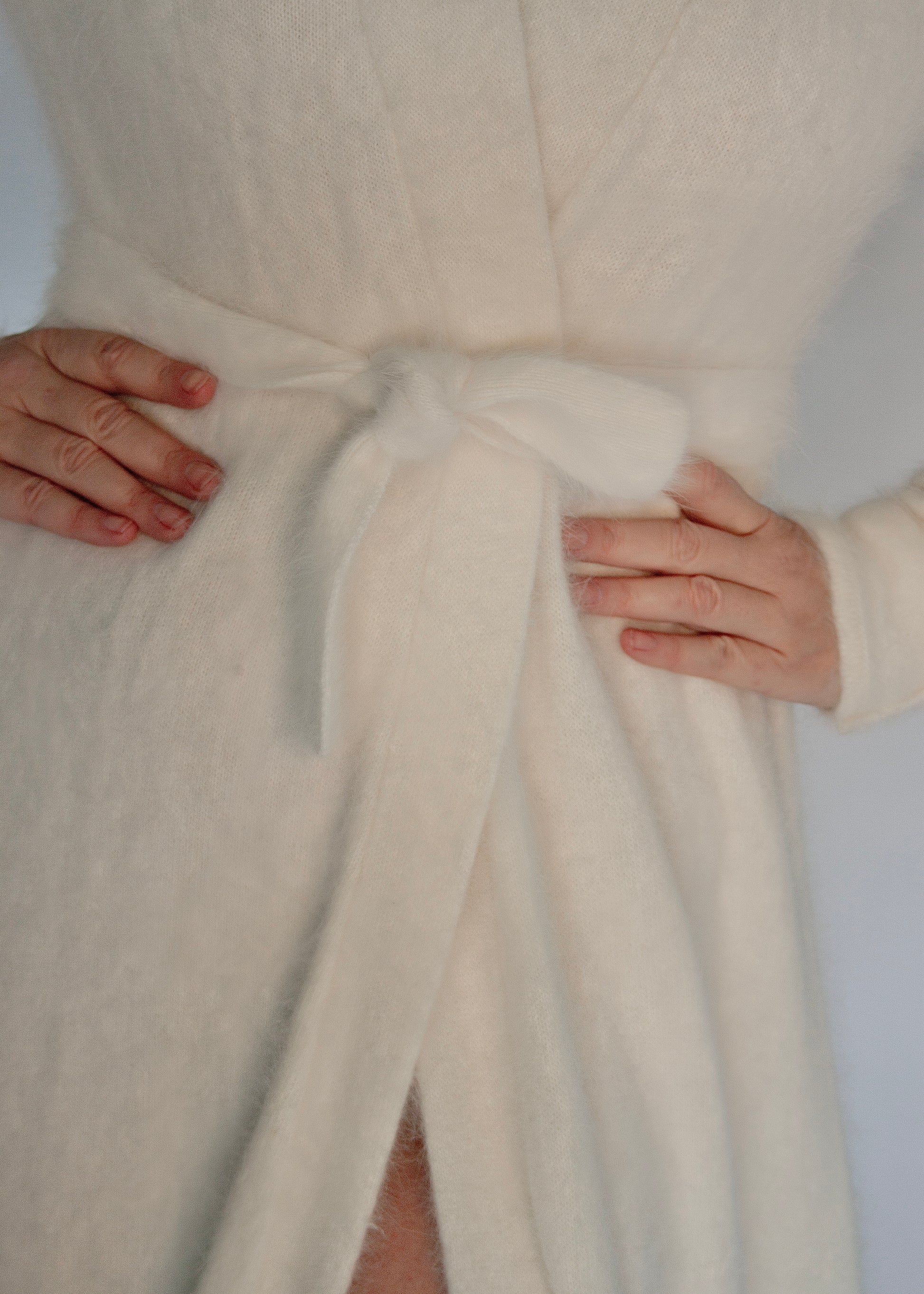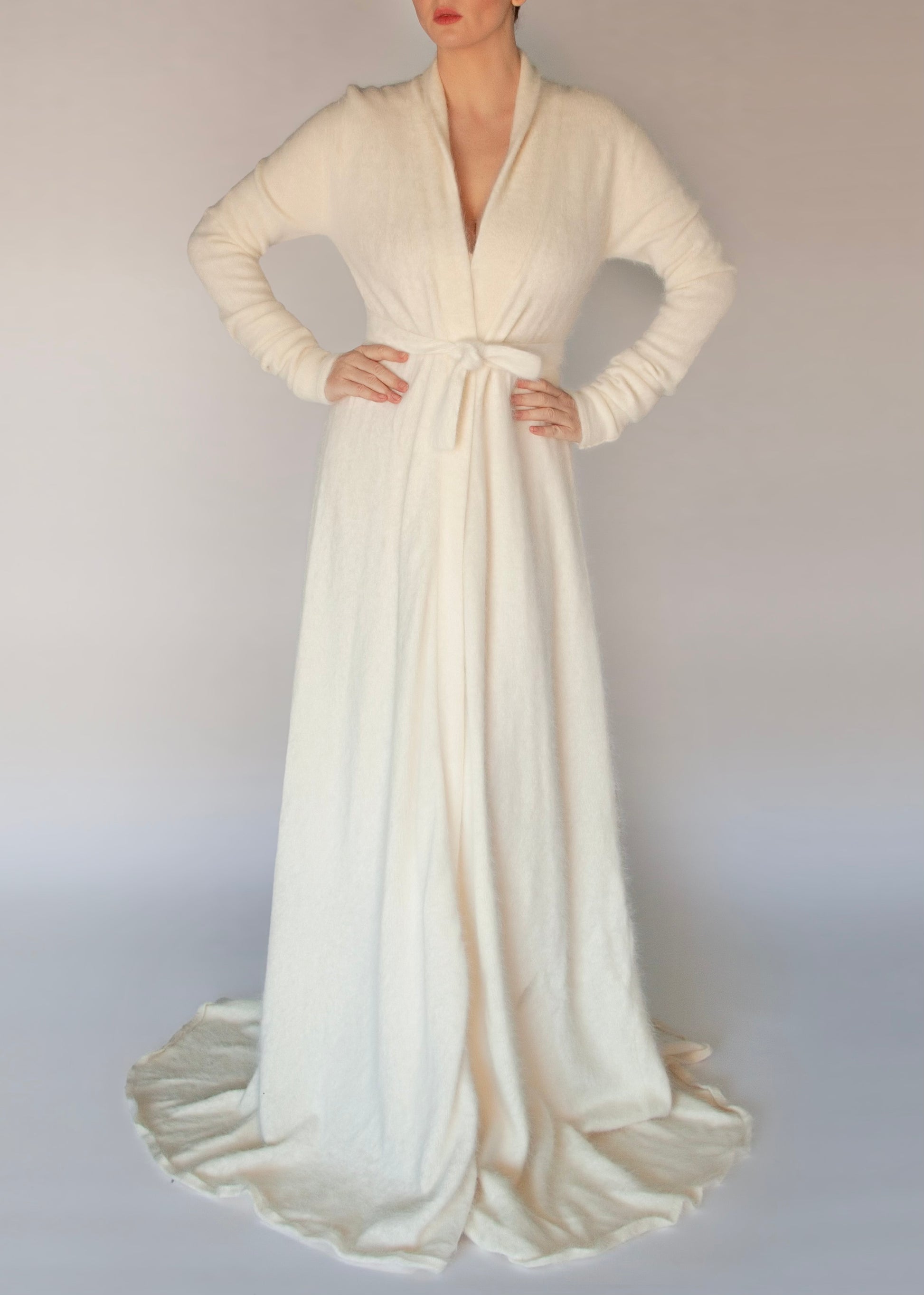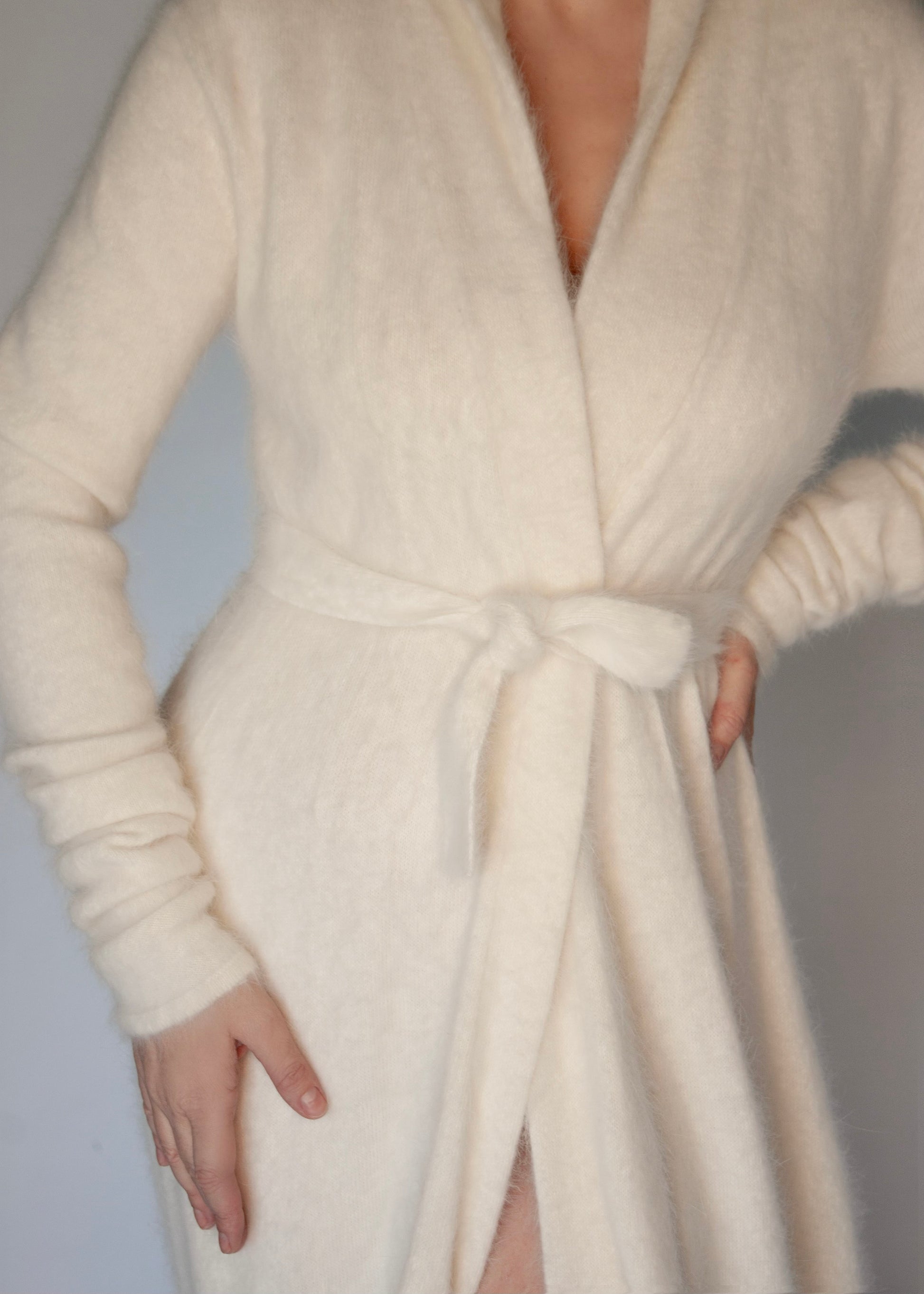 Introducing The Marion Robe- a sumptuous blend of Old Hollywood glamour and modern indulgence. Crafted from 100% Angora, this robe is decadently soft to the touch, wrapping you in a cloud of warmth and elegance.
